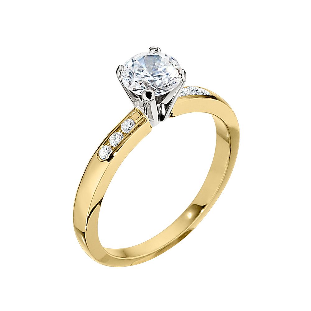 Adorning the narrow band of this sophisticated channel set engagement ring mounting are round brilliant diamonds. The design is crafted using Jabel's signature heirloom quality die struck technique in 14KT yellow, white, and rose gold, 18KT yellow and white gold, and platinum with various settings styles to accommodate an array of center stone shapes and carat sizes.