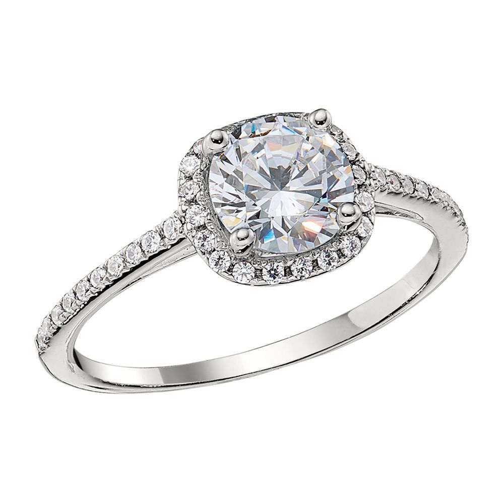 Pure romance! Nestled in an illusion cushion halo adorn with round brilliant diamonds, this engagement ring setting offers a mounting for a round center stone. This ring is crafted in 14KT yellow, white, or rose gold.